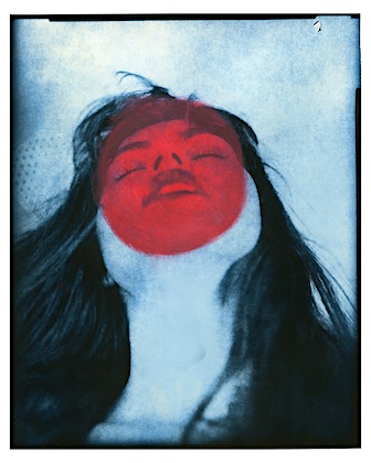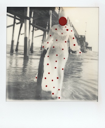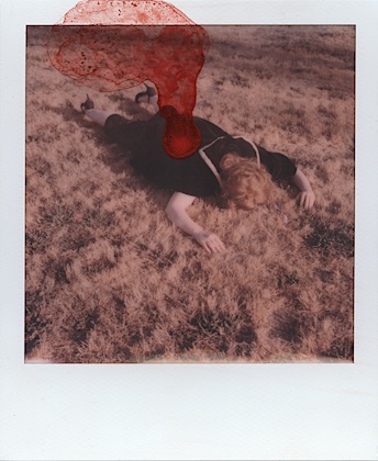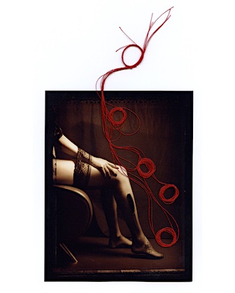 I started with a single red dot then a smear and then the redness just continued from that point on… The women in these images symbolize the goddess of love and fertility. Love, and life alone are complex let alone fertility. Red is a color that recurs in my mixed media pieces. Red being a powerful and energetic color draws attention to areas inside the photograph, and has a natural influence over us and our emotions. I use red to explore love, life, health, and power.