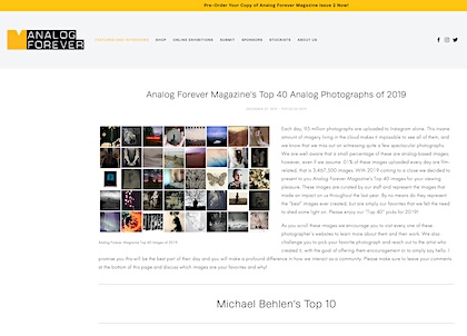 “Top 40 Analog Photographers of 2019” Analog Forever Zine. Dec 2019