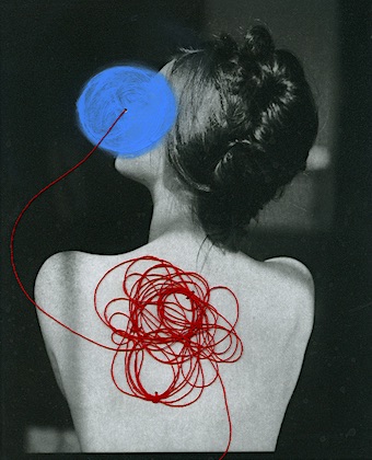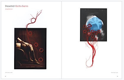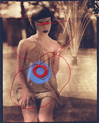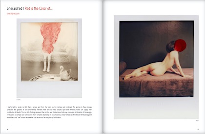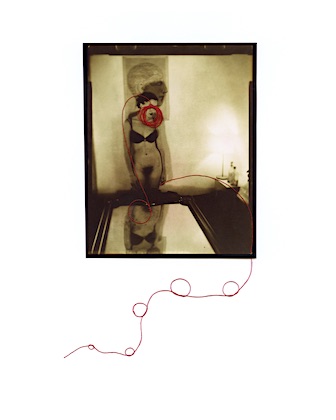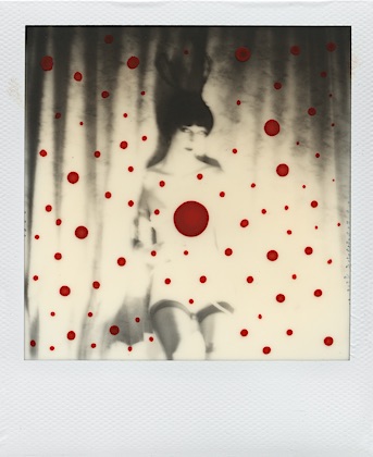 I started with a single red dot then a smear and then the redness just continued from that point on… The women in these images symbolize the goddess of love and fertility. Love, and life alone are complex let alone fertility. Red is a color that recurs in my mixed media pieces. Red being a powerful and energetic color draws attention to areas inside the photograph, and has a natural influence over us and our emotions. I use red to explore love, life, health, and power.