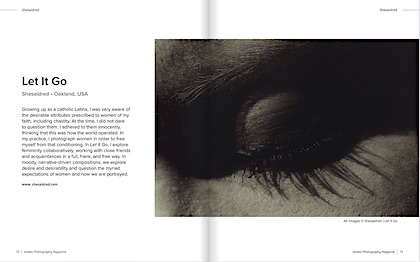 Growing up as a Catholic Latina, I was very aware of the desirable attributes prescribed to women of my faith, including chastity. At the time, I did not dare to question them out loud. I adhered to them innocently, thinking that this was the way the world operated. In my practice, I photograph women in order to free myself from that conditioning. In Let It Go, I explore femininity collaboratively, working with close friends and acquaintances in a full, frank, and free way. In moody, narrative-driven compositions, we explore desire and desirability, and question the myriad expectations of women and how we are portrayed.
