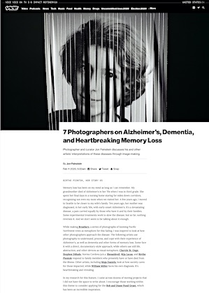 “7 Photographers On Alzheimer’s, Dementia & Heartbreaking Memory Loss” Vice Magazine Feb 2020
